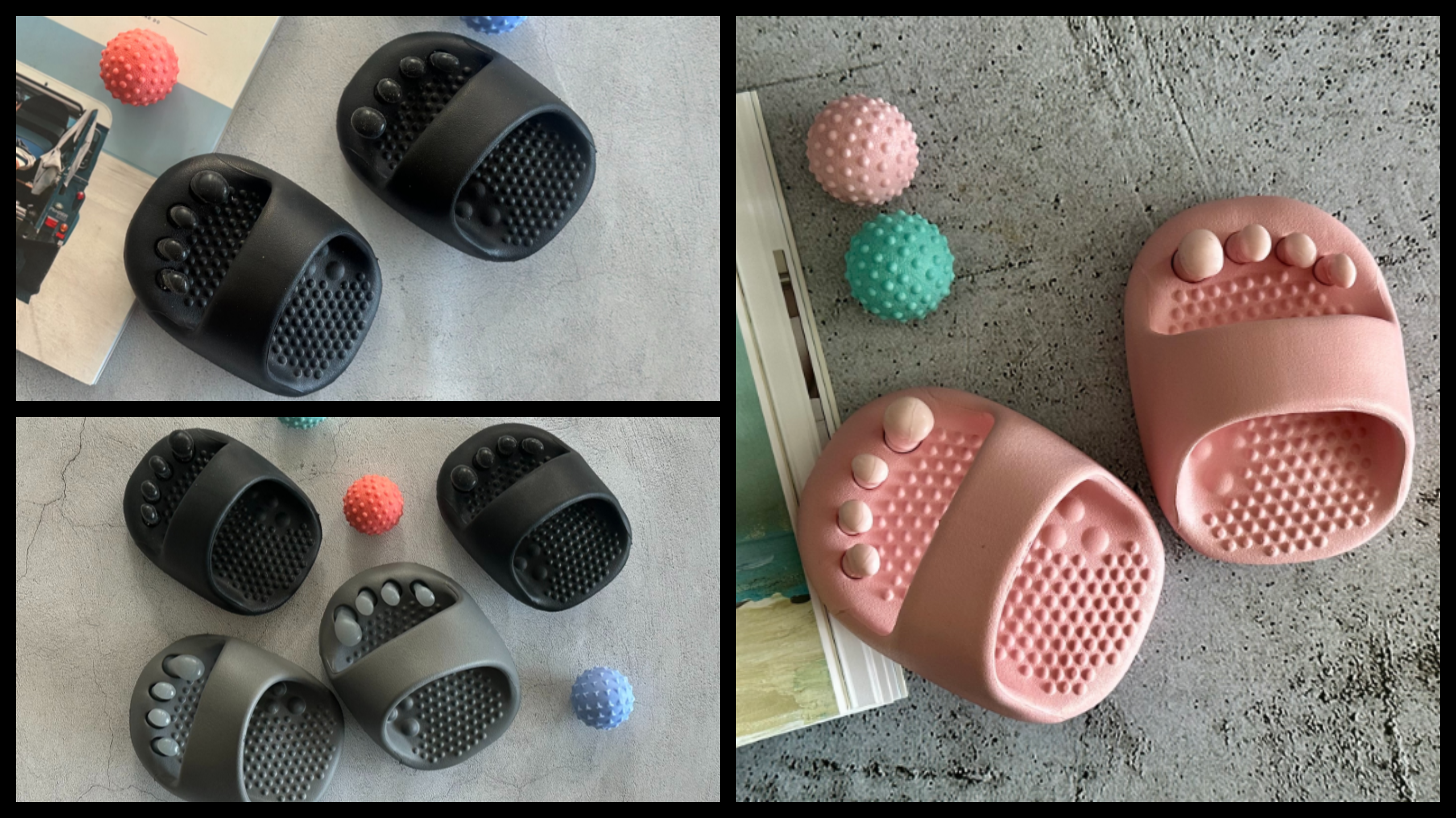 특히 돌기나 지압판이 있는 슬리퍼는 집안일이나 휴식 중에도 손쉽게 발 마사지를 해줄 수 있어요.