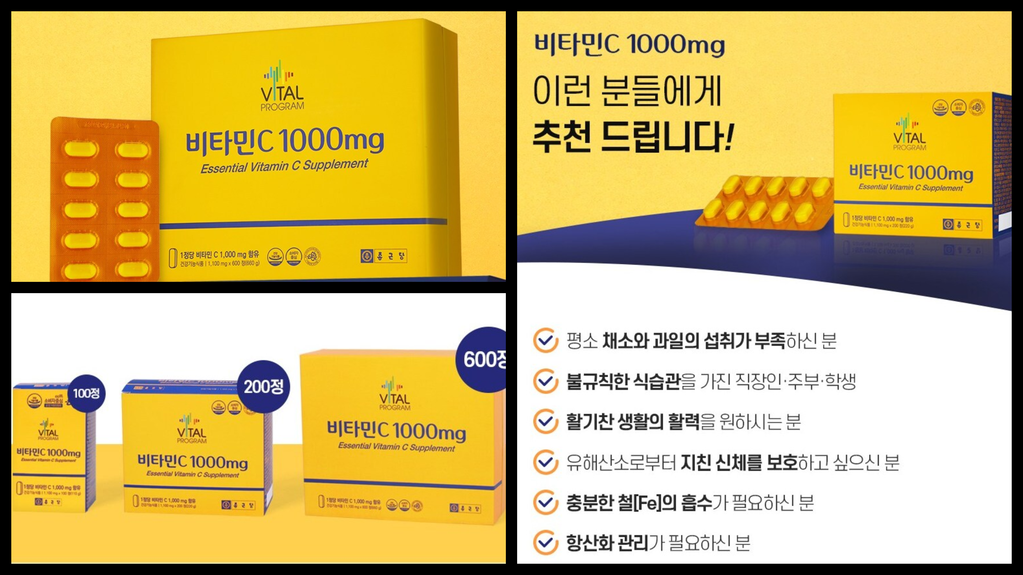 - 고함량 비타민 C 함유: 1정당 1000mg의 비타민 C를 제공하여, 면역력 강화와 항산화 작용에 도움을 줍니다.