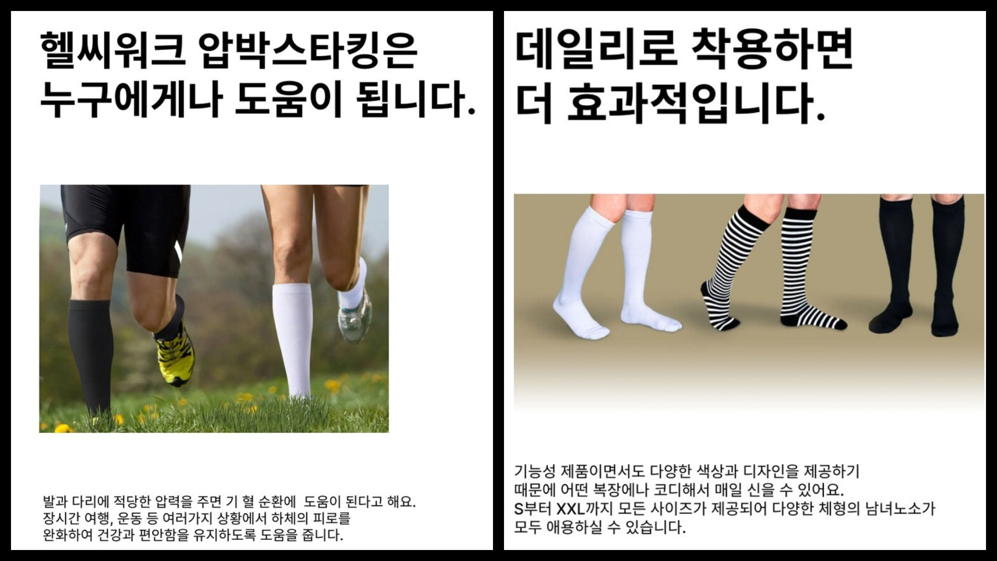 - 착용 시 주의 필요: 압박스타킹 착용 시 사이즈 선택과 올바른 착용 방법이 중요하며, 처음 착용 시에는 착용 시간을 점차 늘리는 것이 좋습니다.